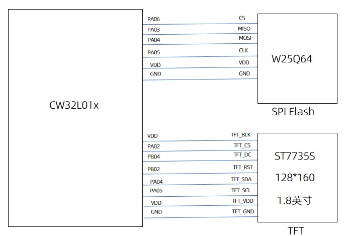 图:CW32L01x系列MCU在TFT屏的硬件连接